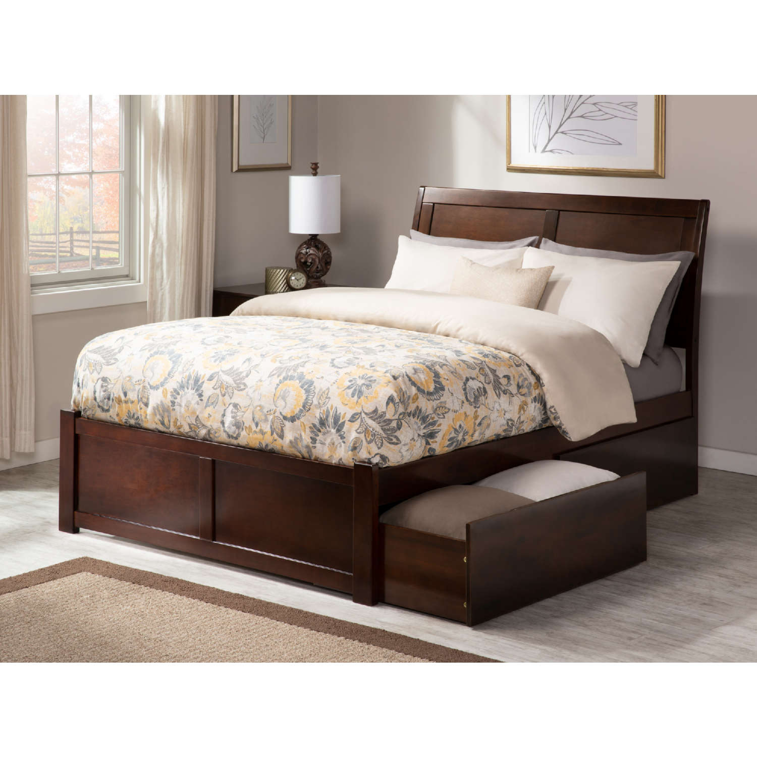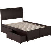 AFI Furnishings Portland Full Bed with Flat Panel Footboard & 2 Under Bed Drawers in Antique Walnut