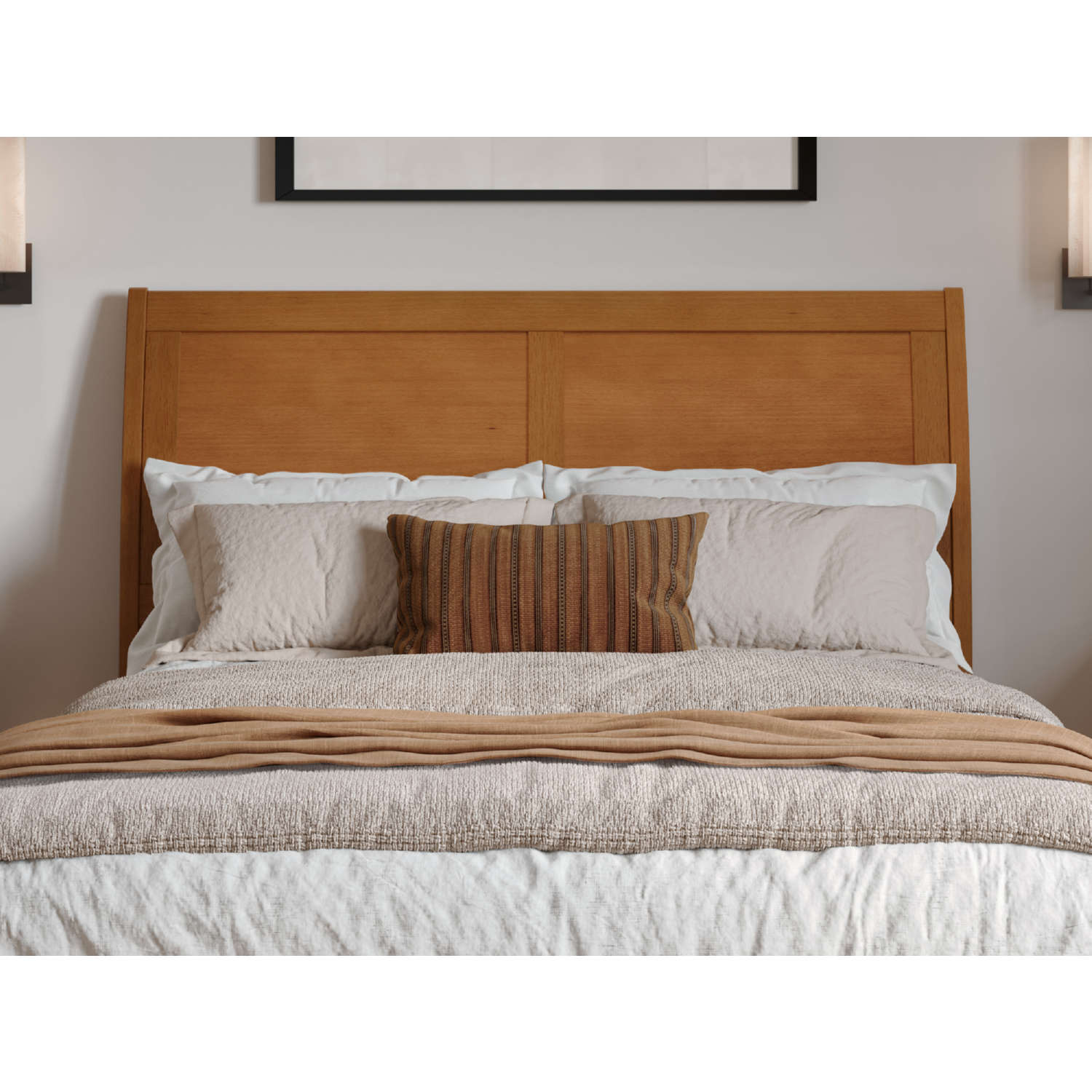 • Curved sleigh panel headboard perfect for those seeking a sleek modern style