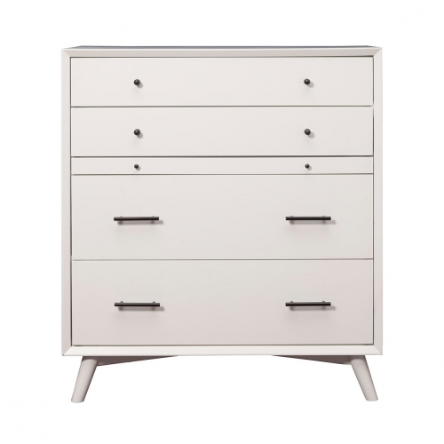 Alpine Furniture Flynn Mid Century Modern 4 Drawer Multifunction Chest with Pull Out Workstation Tray in White Finish