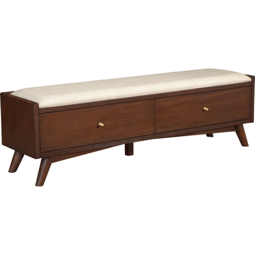 Alpine Furniture 966WAL-12 Flynn Bench Walnut Finish Neutral Fabric