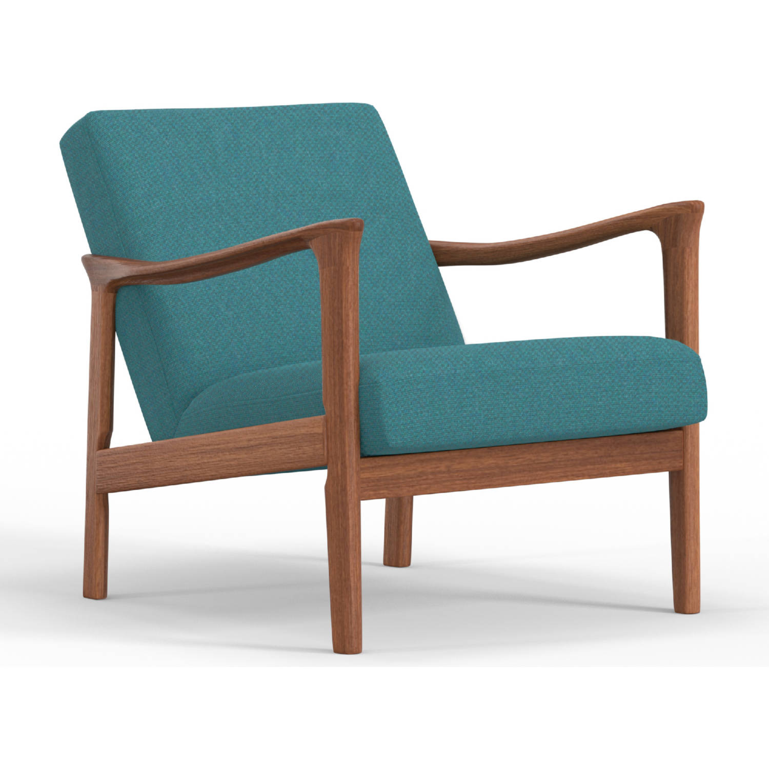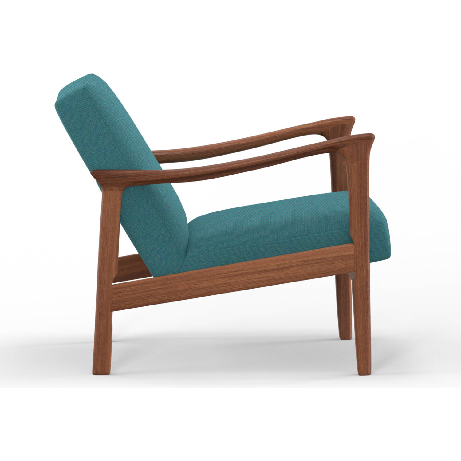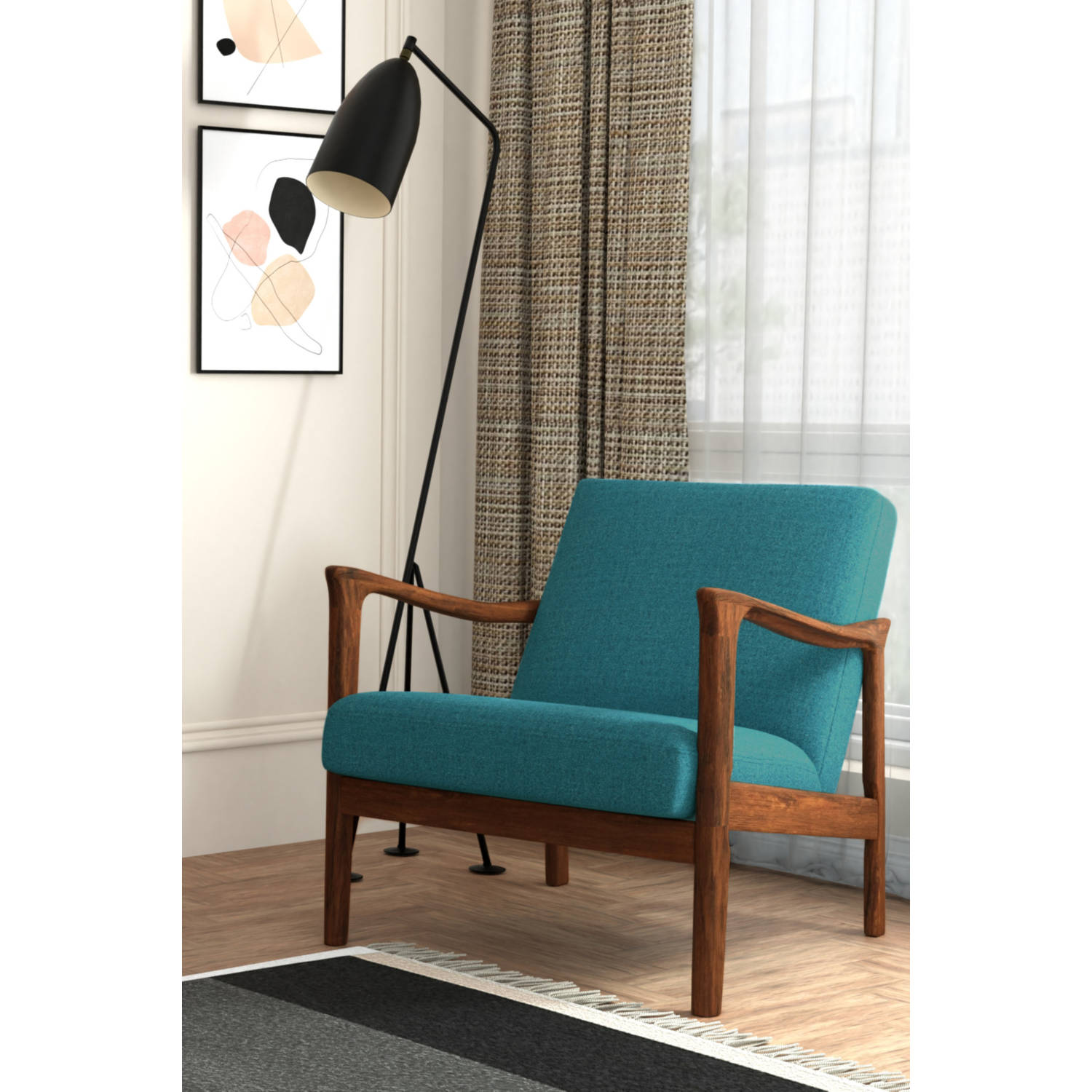 Alpine Furniture Zephyr Lounge Chair in Turquoise Blue Fabric & Wood Frame