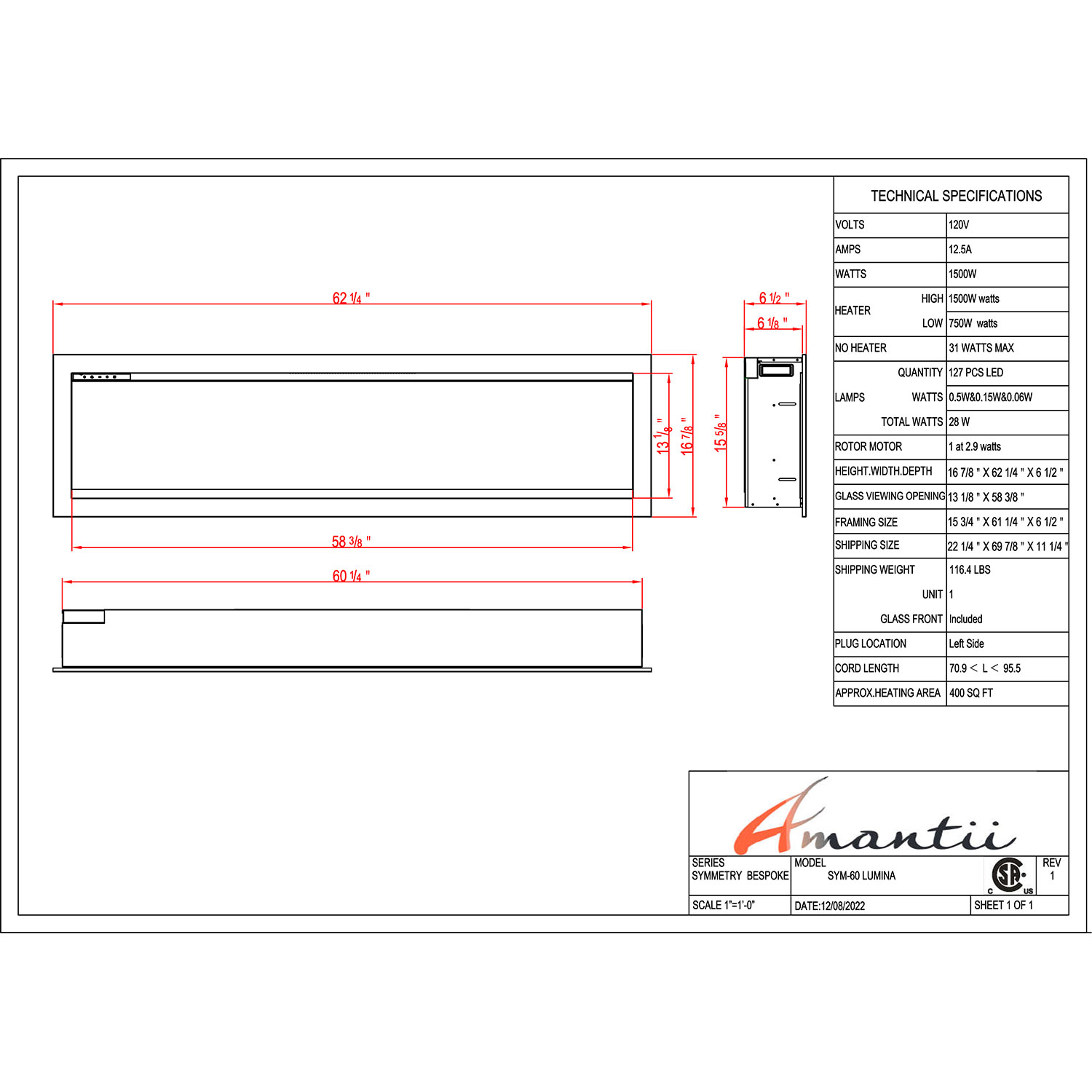 Amantii SYM-60-LUMINA Symmetry Lumina 60" Indoor Outdoor Built In Smart Electric Fireplace WiFi