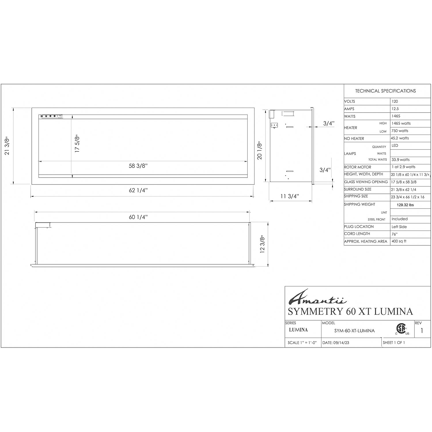 Amantii SYM-60-XT-LUMINA Symmetry XT LUMINA 60" Indoor Outdoor Built In Smart Electric Fireplace WiFi