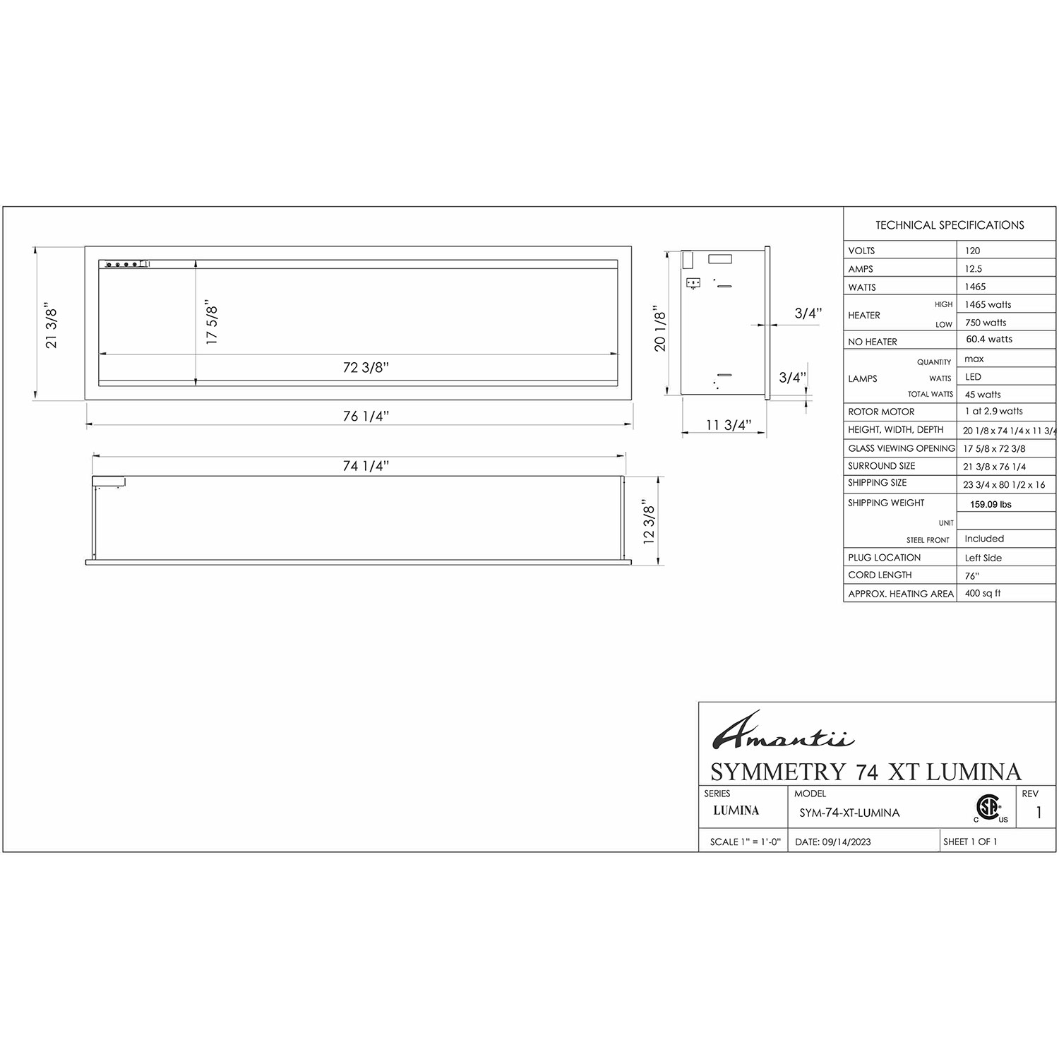 Amantii SYM-74-XT-LUMINA Symmetry XT LUMINA 74" Indoor Outdoor Built In Smart Electric Fireplace WiFi