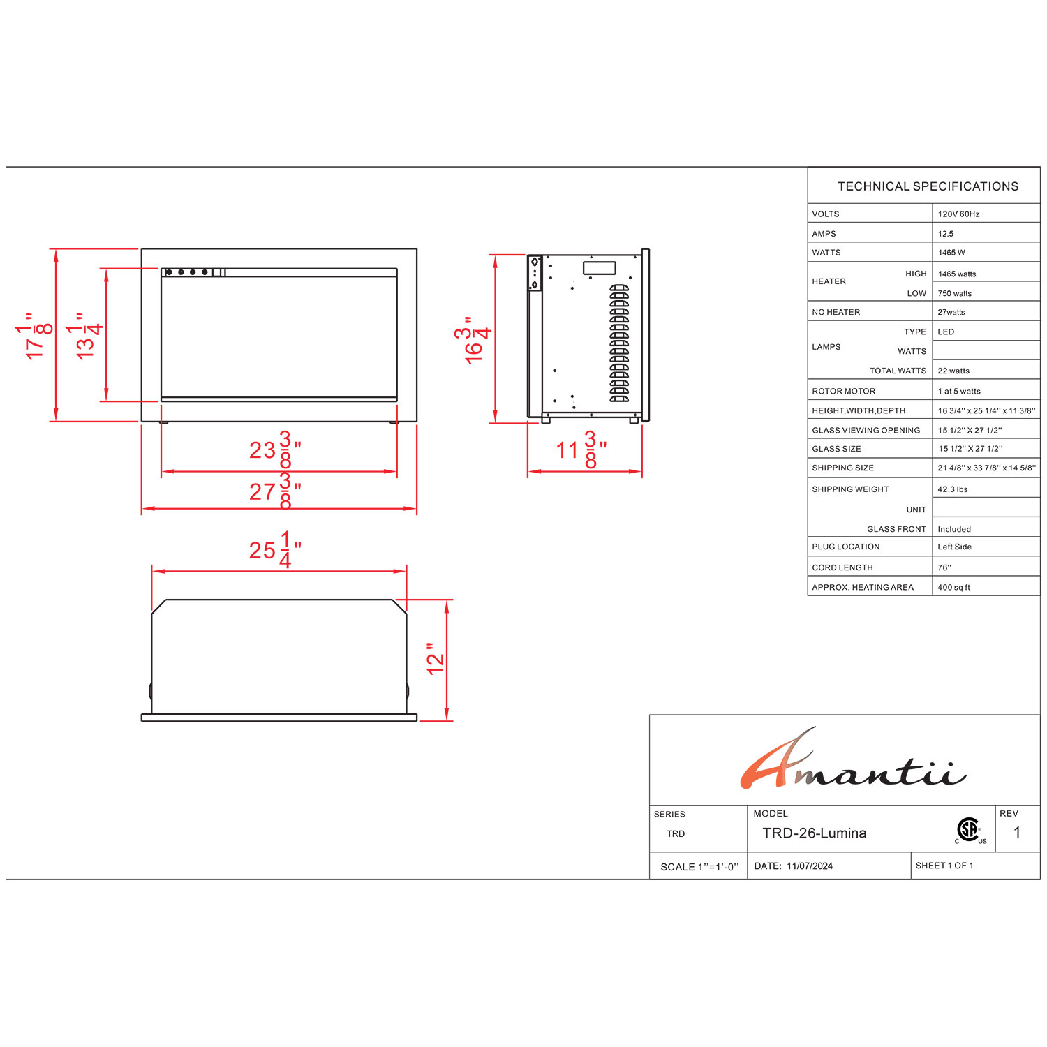 Amantii TRD-26-LUMINA Traditional Lumina 26" Indoor Outdoor Smart Electric Fireplace WIFI