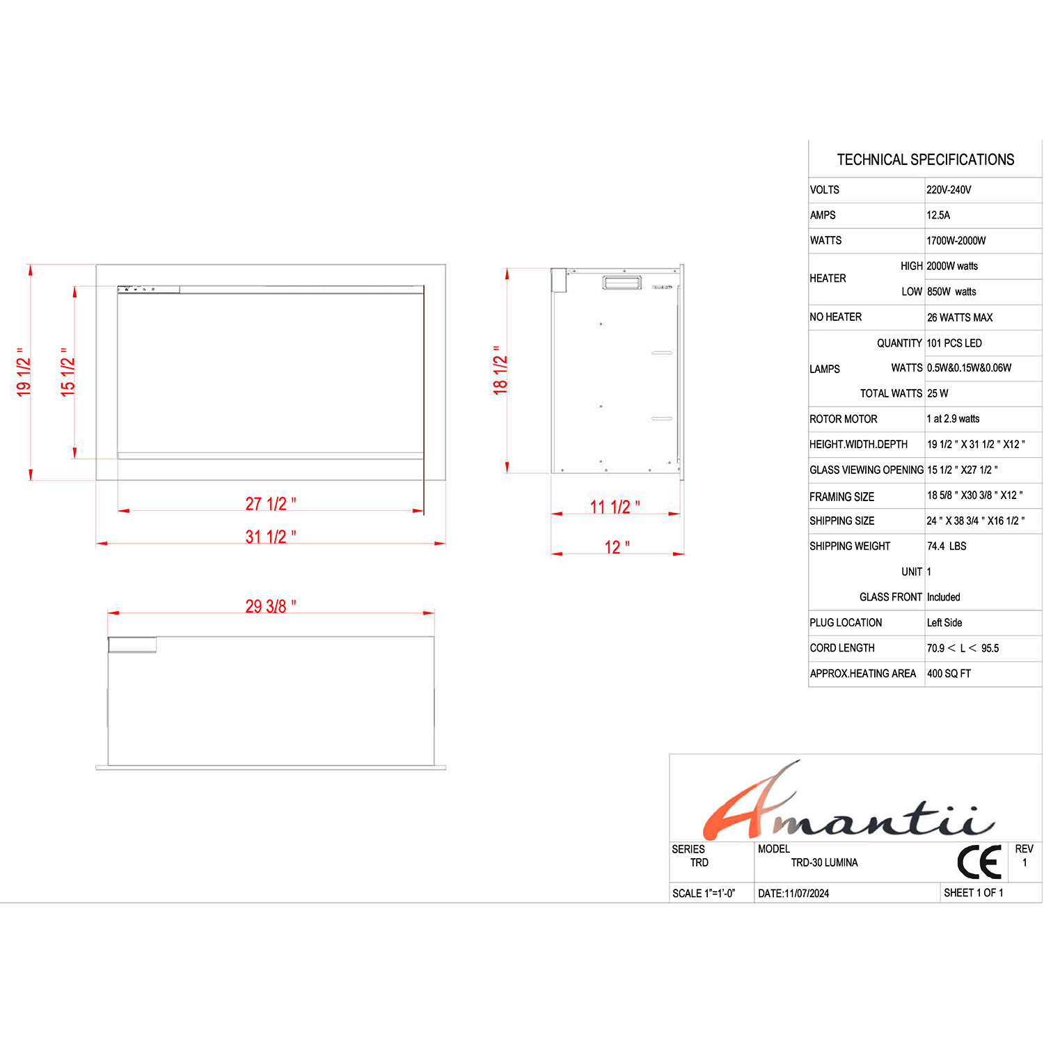 Amantii TRD-30-LUMINA Traditional Lumina 30" Indoor Outdoor Smart Electric Fireplace WIFI