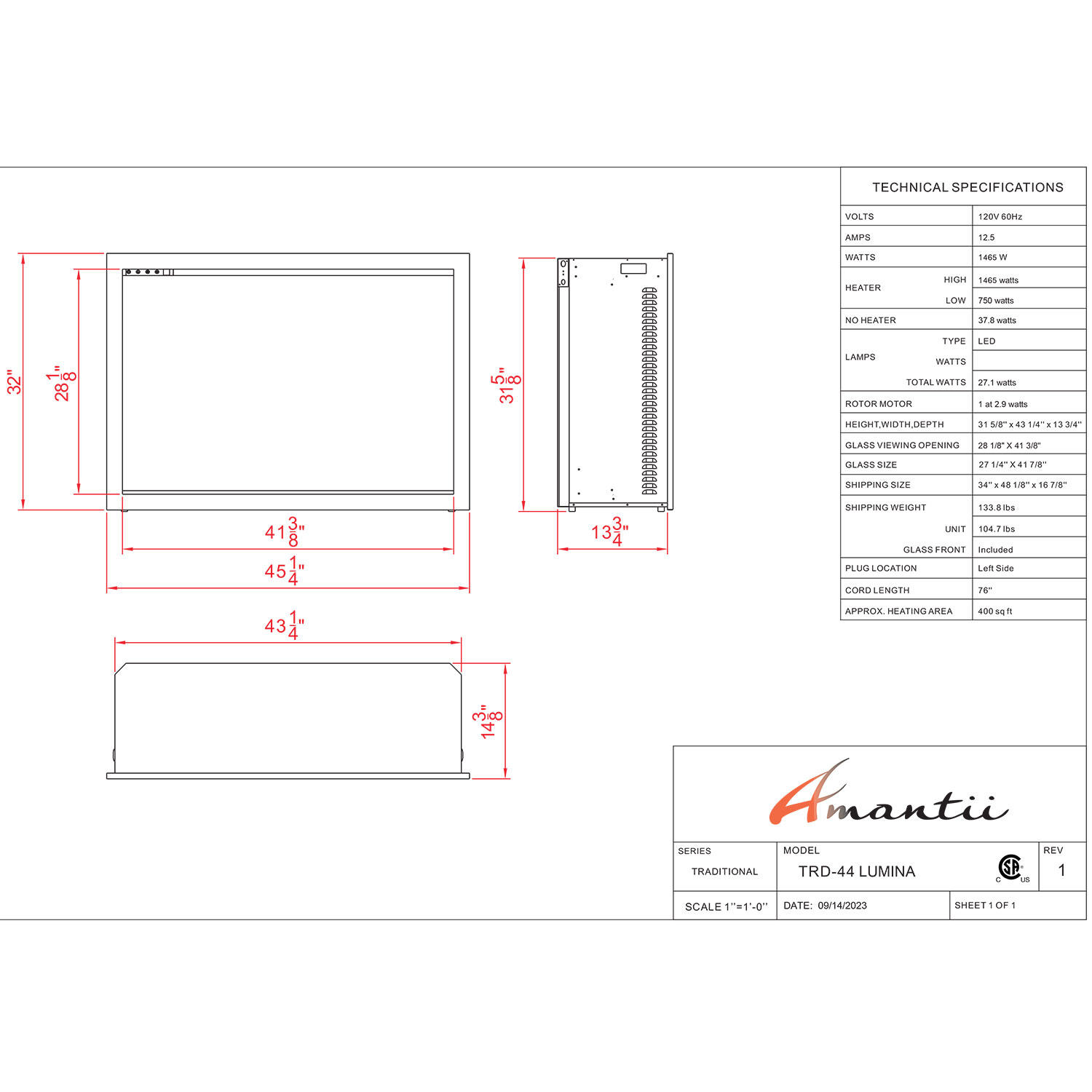 Amantii TRD-44-LUMINA Traditional Lumina 44" Indoor Outdoor Smart Electric Fireplace WIFI