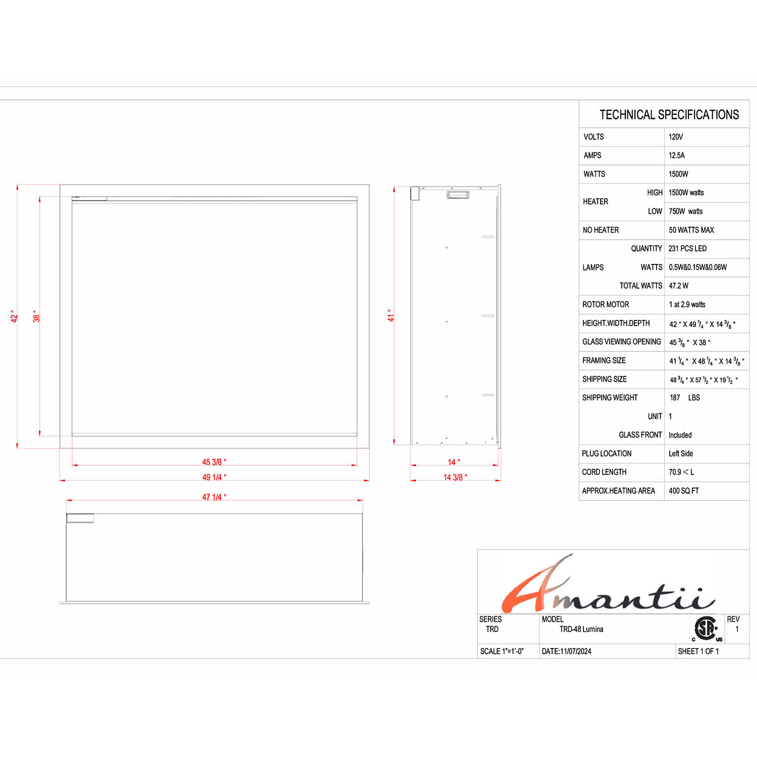 Amantii TRD-48-LUMINA Traditional Lumina 48" Indoor Outdoor Smart Electric Fireplace WIFI