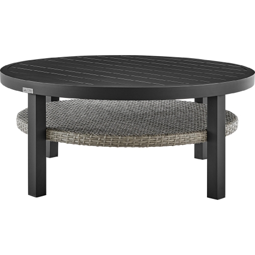 Armen Living 840254332508 Aileen Outdoor Coffee Table Black Aluminum & Grey Wicker