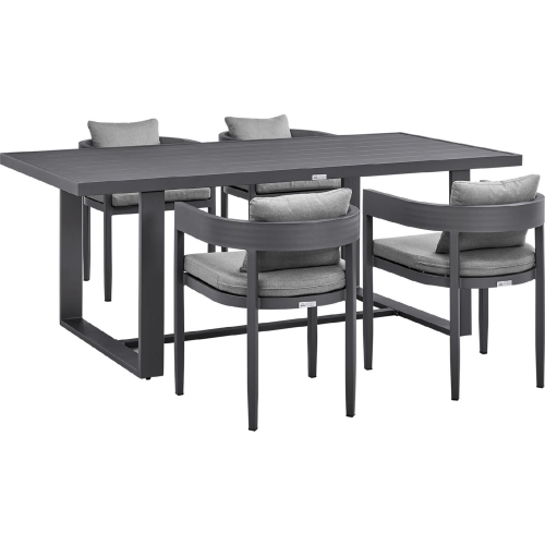 Armen Living Argiope Outdoor 5 Piece Dining Table Set in Grey Aluminum & Grey Fabric