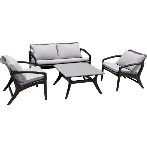 Armen Living 840254336100 Brighton 4 Piece Outdoor Loveseat Set Dark Wood, Grey Rope & White Fabric