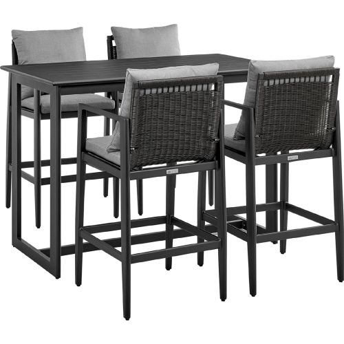 Armen Living 840254333321 Grand Outdoor 5 Piece Bar Dining Set Black Aluminum & Grey Fabric
