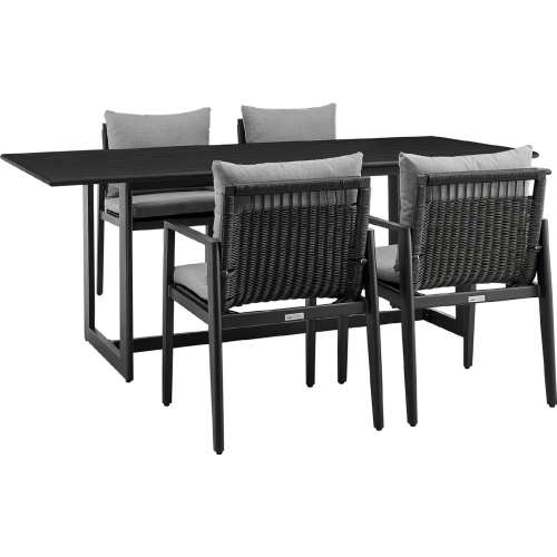 Armen Living 840254333260 Grand Outdoor 5 Piece Dining Table Set Black Aluminum & Grey Fabric