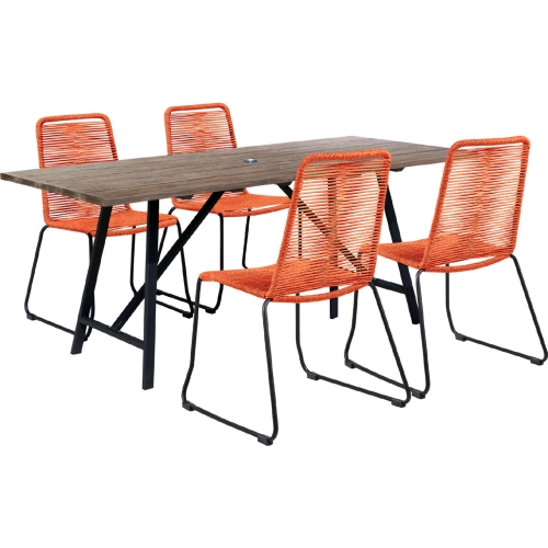 Armen Living 840254336414 Koala & Shasta 5 Piece Outdoor Dining Set Light Eucalyptus & Tangerine Rope