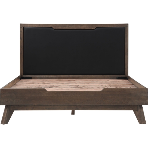 Armen Living LCAHBDDGQN Astoria Queen Platform Bed Frame Oak & Black Leatherette