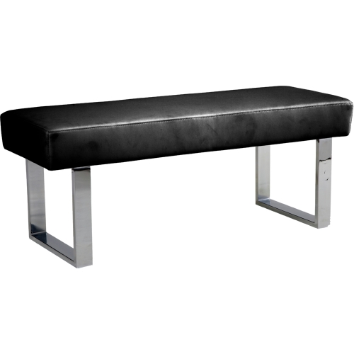 Armen Living Amanda Dining Bench in Black Leatherette with Chrome Legs