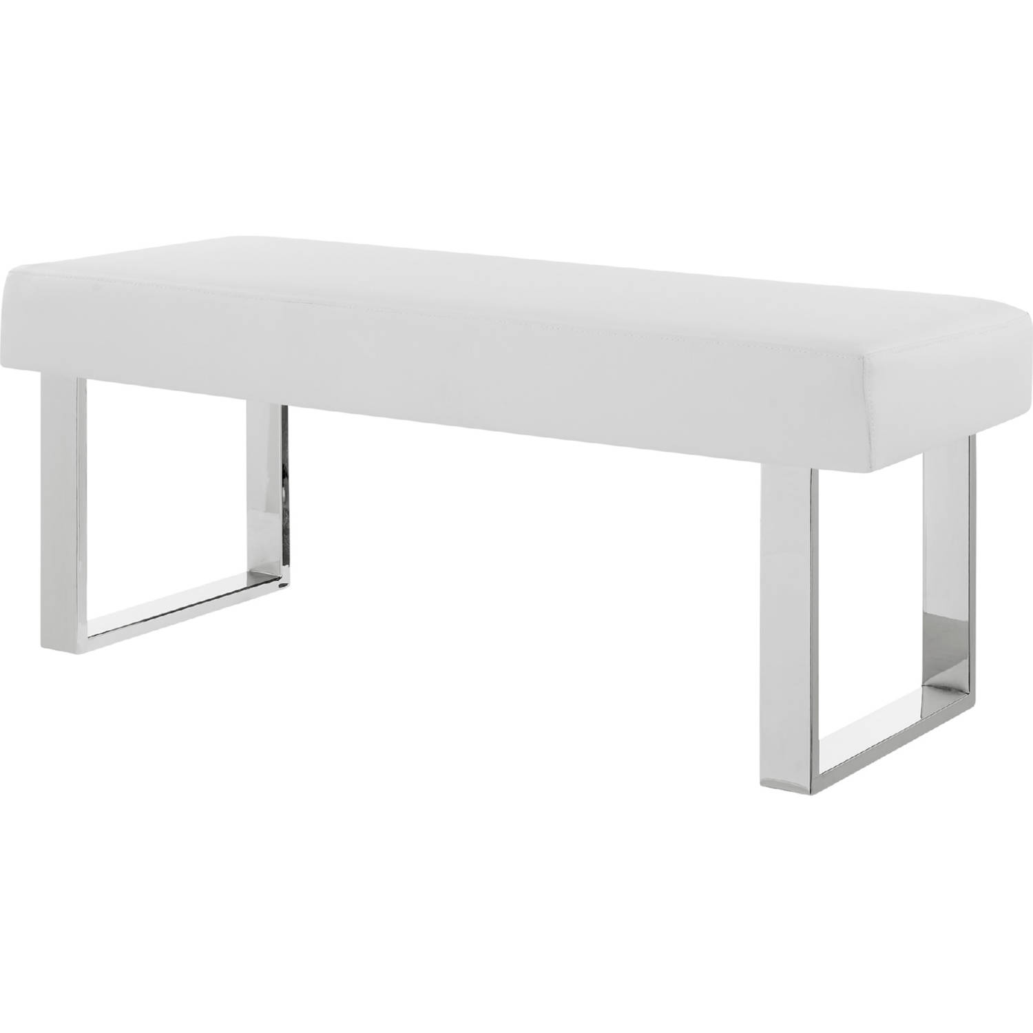 Armen Living LCAMBEWHBCH Amanda Dining Bench White Leatherette w/ Chrome Legs