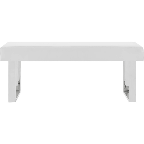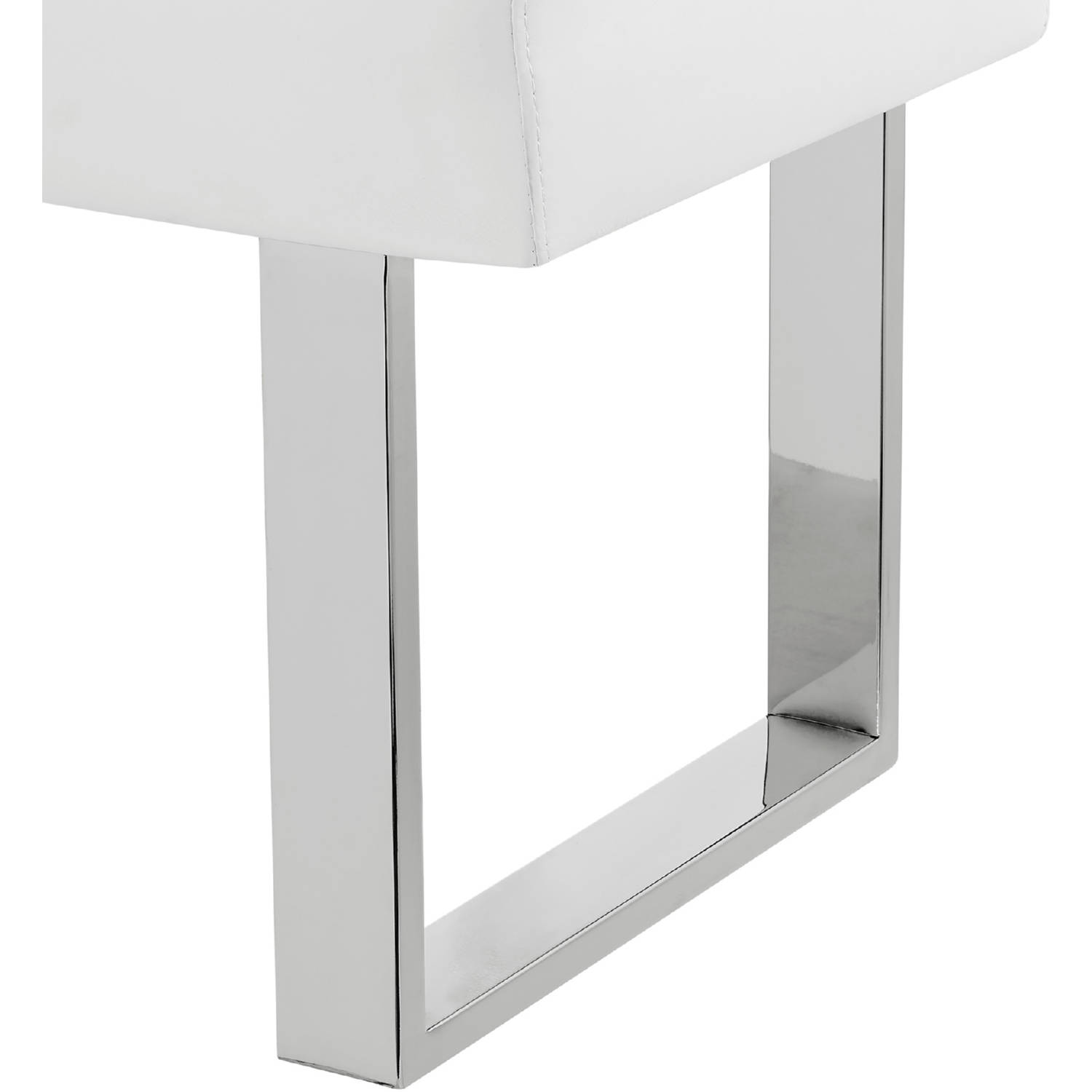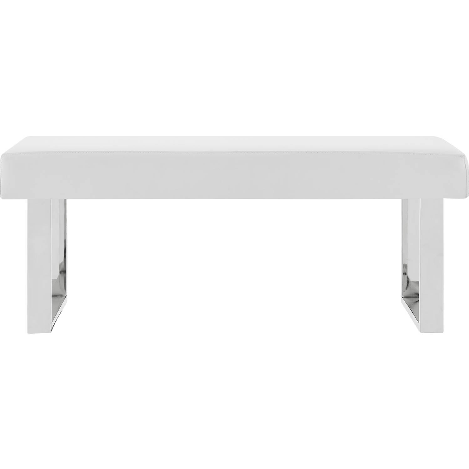 Armen Living Amanda Dining Bench in White Leatherette with Chrome Legs