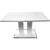 • The bench style seating, white lacquer finish and chrome base, exude elegance and style.
