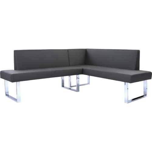 Armen Living Amanda Nook Corner Dining Bench in Grey Leatherette on Chrome