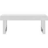 • The bench style seating, white lacquer finish and chrome base, exude elegance and style.