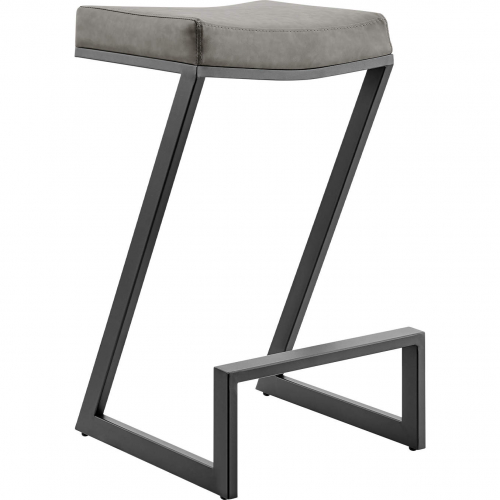 Armen Living LCAT26BLKVGRY Atlantis 26" Backless Counter Stool Black Iron Vintage Gray Leatherette