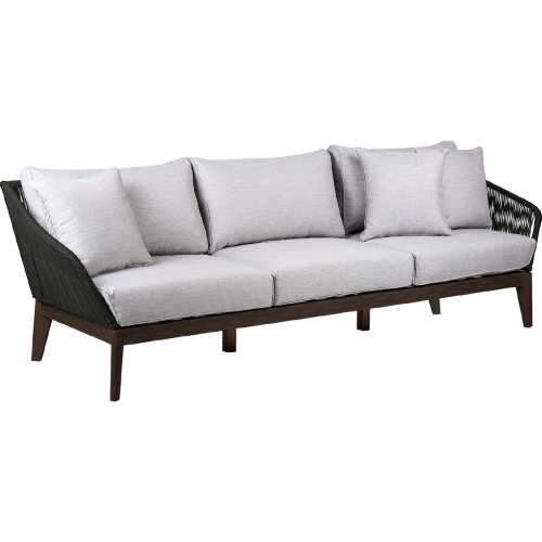 Armen Living Athos Indoor Outdoor Sofa in Dark Wood, Latte Rope & Gray Fabric