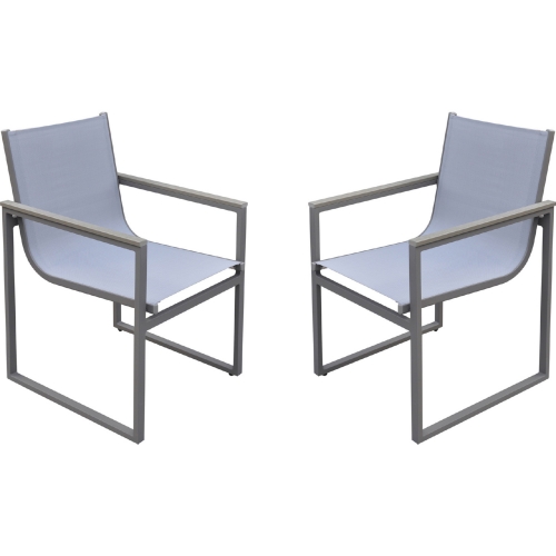 Armen Living Bistro Outdoor Dining Chair in Grey Textilene & Aluminum (Set of 2)