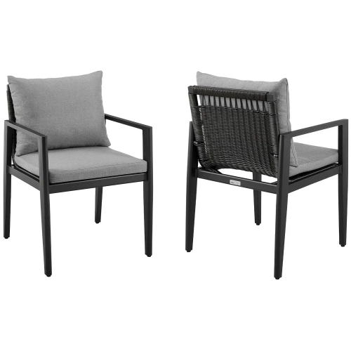 Armen Living Cayman Outdoor Dining Arm Chair in Black Aluminum & Grey Fabric (Set of 2)