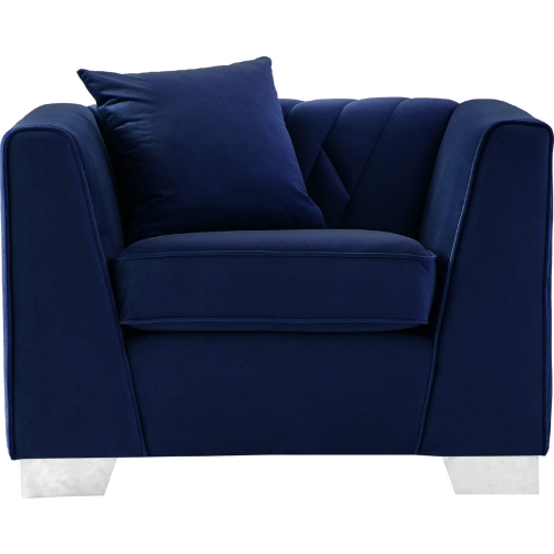 Armen Living Cambridge Accent Chair in Blue Velvet & Brushed Stainless Steel