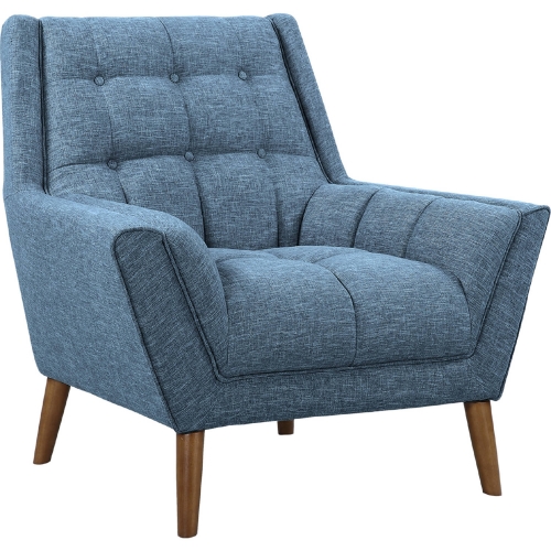 Armen Living Cobra Mid-Century Modern Arm Chair in Tufted Blue Linen on Walnut Legs