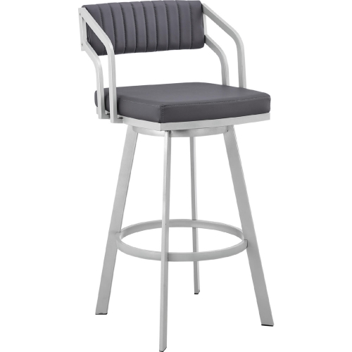 Armen Living Capri 26" Swivel Counter Stool in Slate Grey Leatherette & Silver Metal