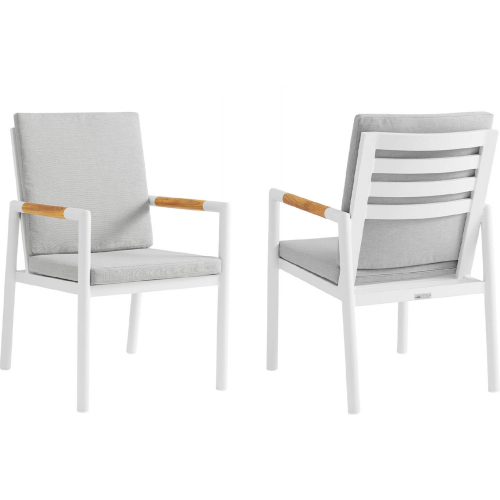 Armen Living Crown Outdoor Dining Chair in Gray Fabric, White Metal & Teak (Set of 2)