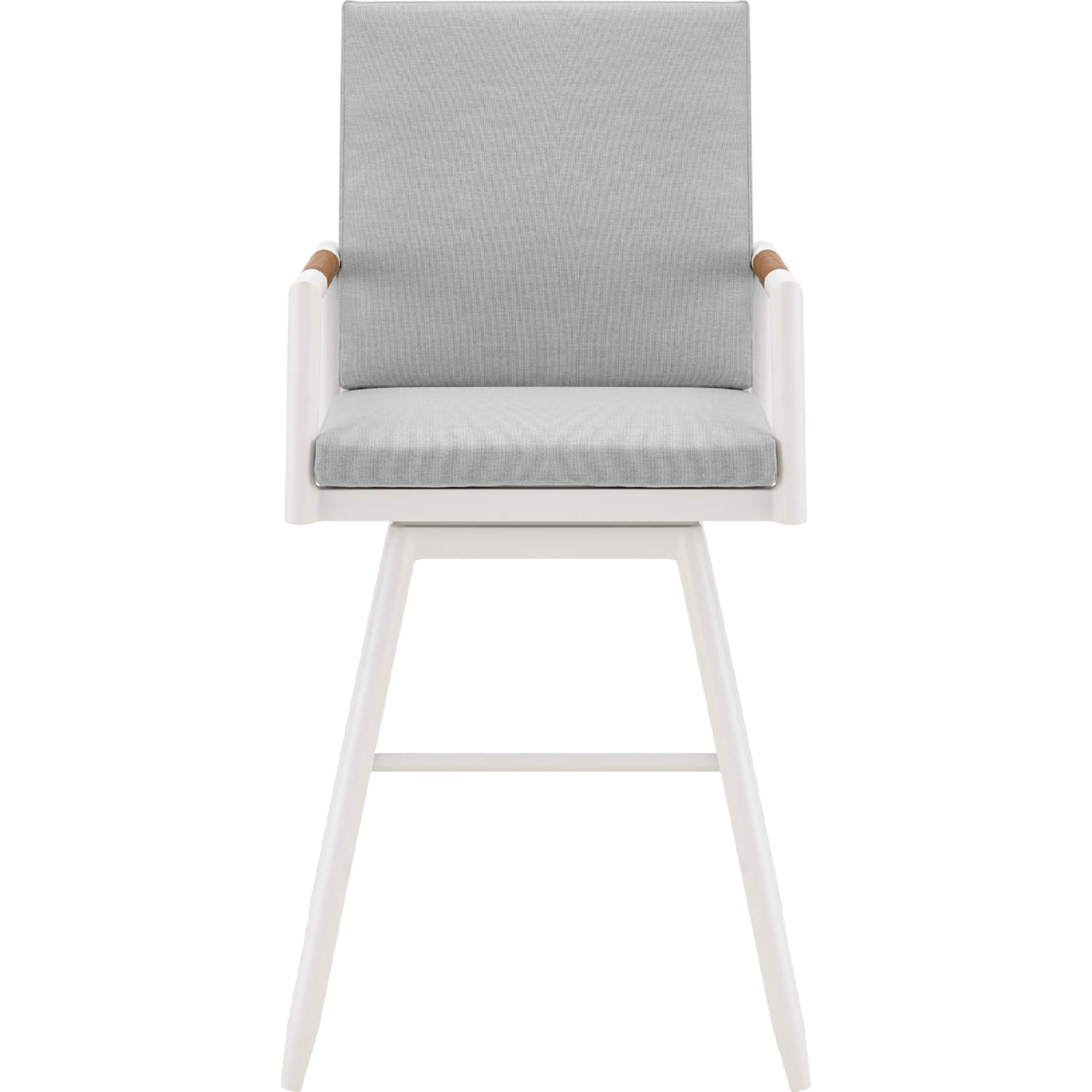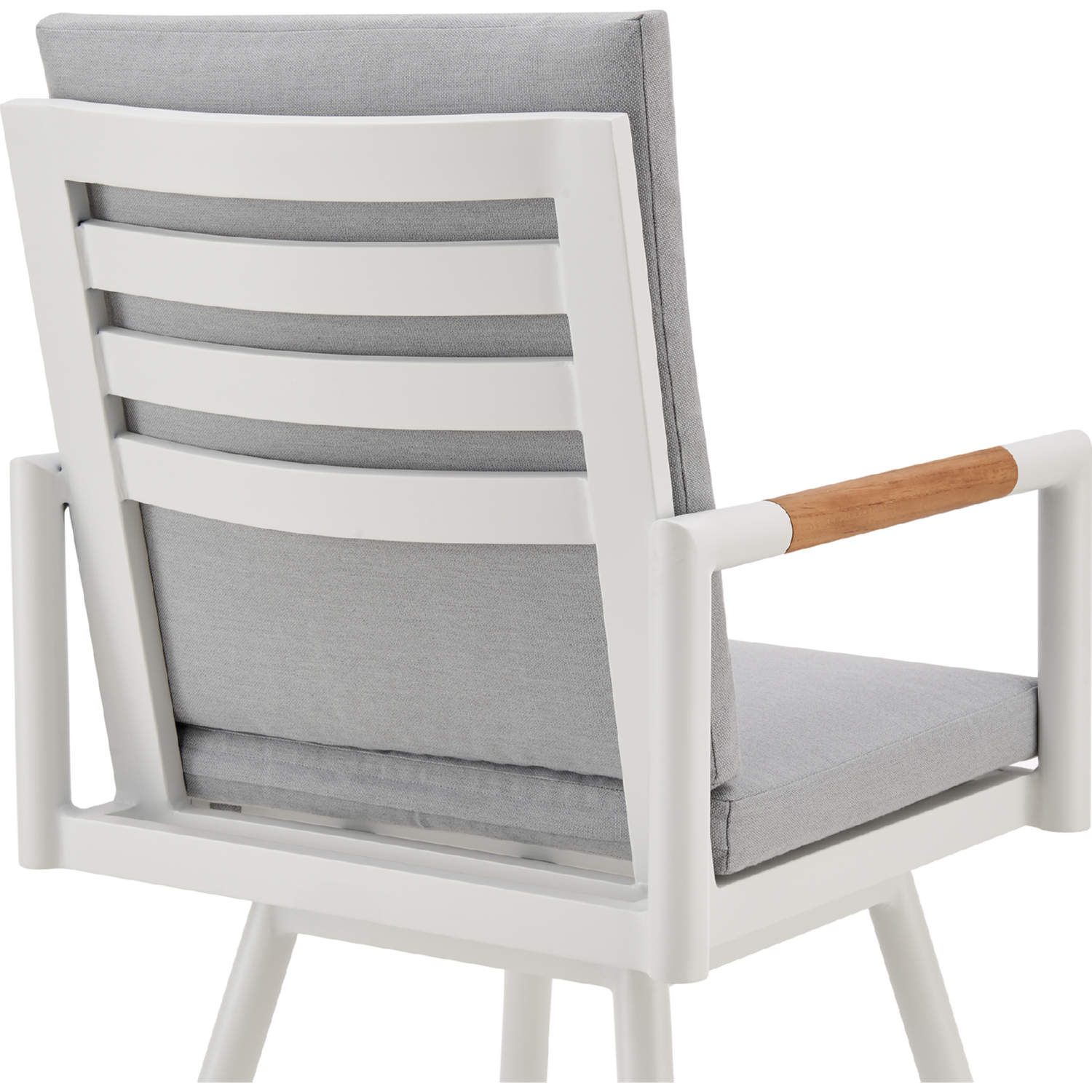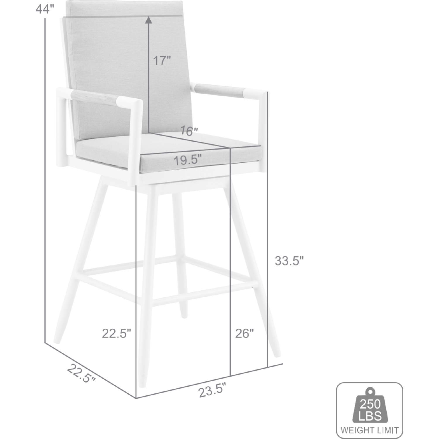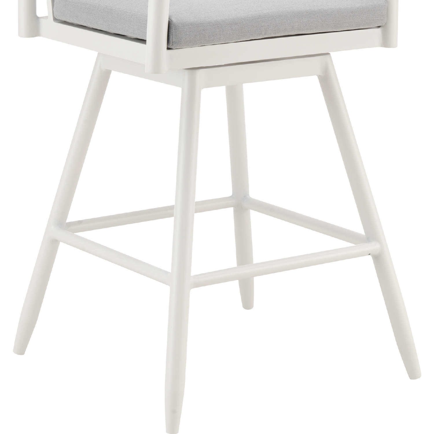 Armen Living LCCRSWBAWH26 Crown Outdoor Swivel 26" Counter Stool White Aluminum, Brown Rope & Light Gray Fabric (Set of 2)