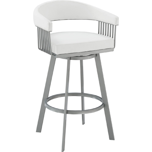 Armen Living LCCSBASLWH26 Chelsea 26" Swivel Counter Stool White Leatherette & Silver Metal