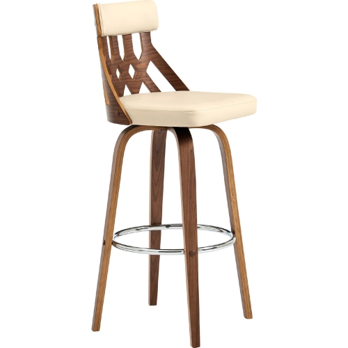 Armen Living Crux 30" Swivel Bar Stool in Cream Leatherette & Walnut Finish