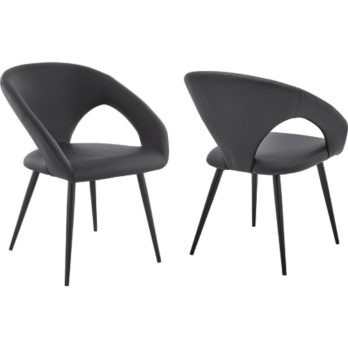 Armen Living Elin Dining Chair in Gray Leatherette & Black Metal (Set of 2)