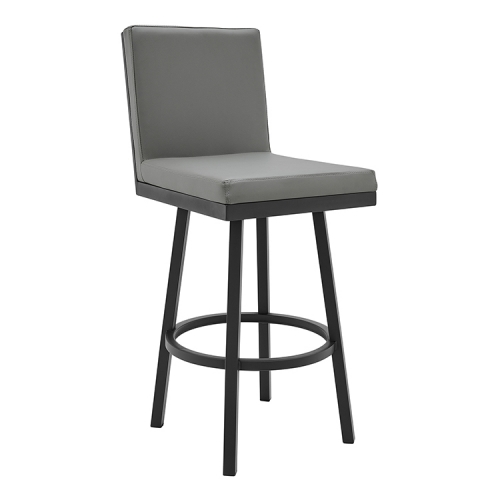 Armen Living LCGEBABLGR26 Rochester Swivel 26" Counter Stool Grey Leatherette & Black Metal