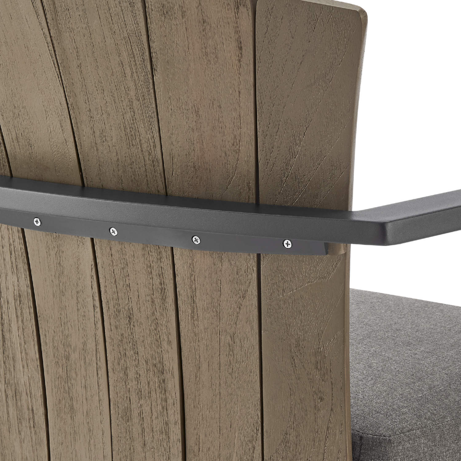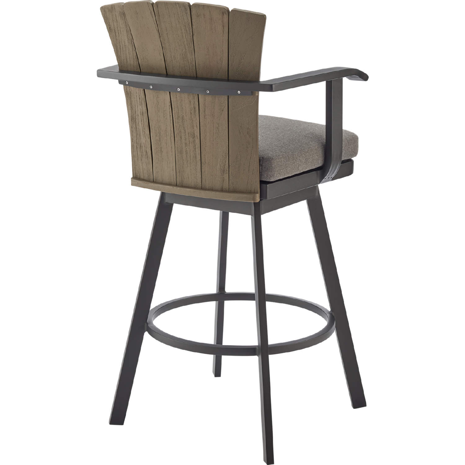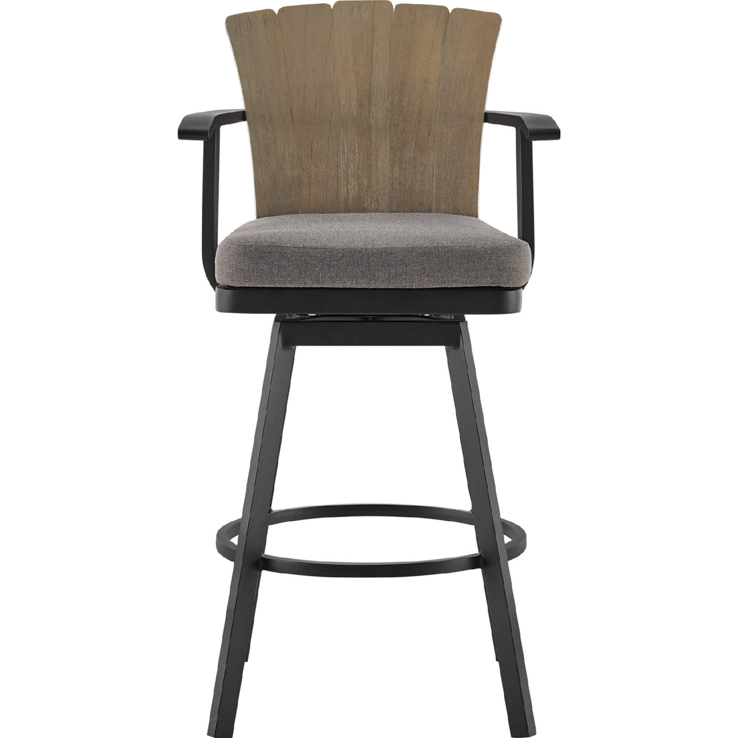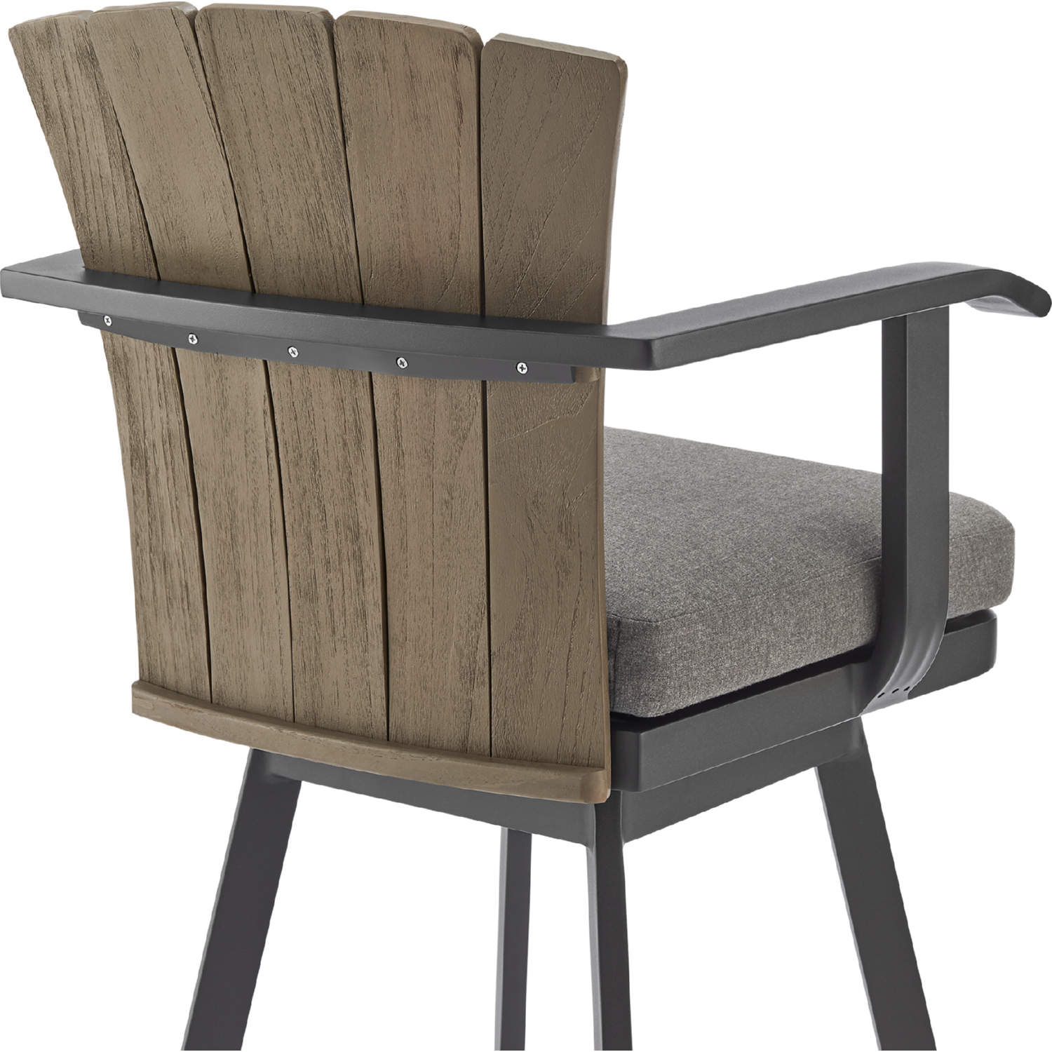 Armen Living Hazel Outdoor Swivel 30" Bar Stool in Aluminum, Teak Wood & Charcoal Fabric (Set of 2)