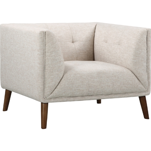 Armen Living Hudson Mid Century Arm Chair in Tufted Beige Linen & Walnut Legs (Set of 2)