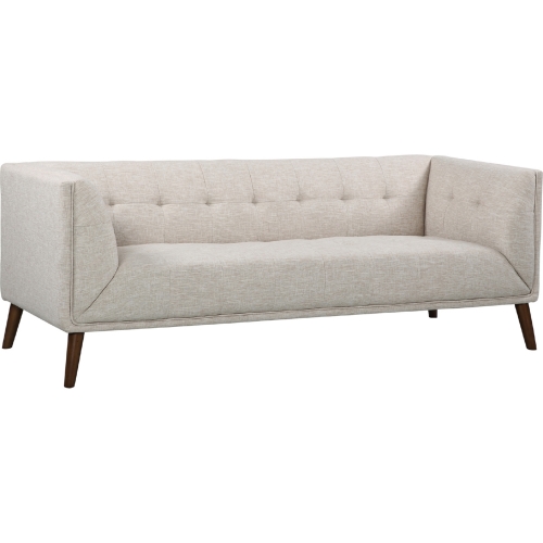 Armen Living Hudson Mid Century Sofa in Tufted Beige Linen & Walnut Legs