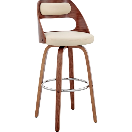 Armen Living LCJUBAWACR26 Julius 26" Swivel Counter Stool Cream Leatherette & Walnut Finish