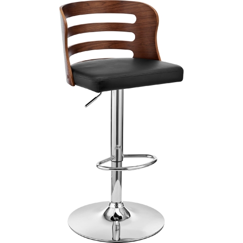 Armen Living LCKHBAWABL Khalia Adjustable Height Swivel Bar Stool Black Leatherette & Walnut Finish & Chrome