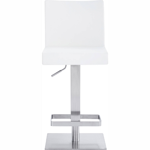 Armen Living Legacy Adjustable Height Swivel Bar Stool in Brushed Stainless Finish & White Leatherette