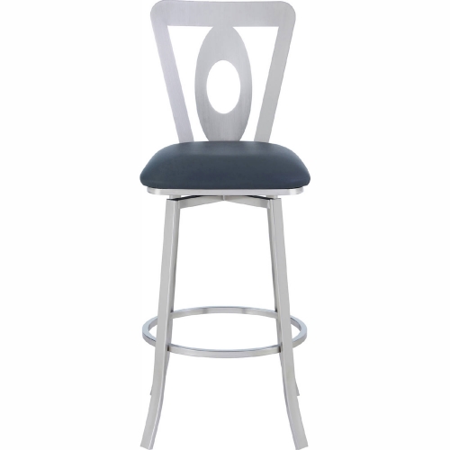 Armen Living Lola 30" Bar Stool in Brushed Stainless Finish & Grey Leatherette