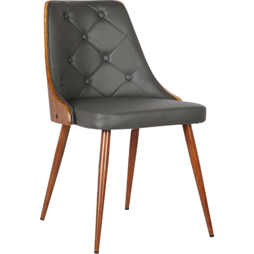 Armen Living Lily Mid Century Dining Chair in Walnut Finish & Tufted Gray Leatherette
