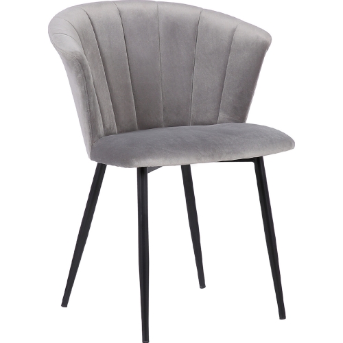 Armen Living Lulu Dining Chair in Channel Tufted Grey Velvet & Black Metal Legs