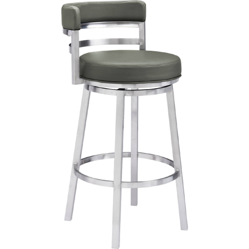Armen Living LCMABABSGR30 Madrid 30" Bar Stool Brushed Stainless Steel & Grey Leatherette