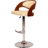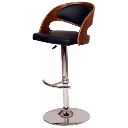 Armen Living Malibu Adjustable Height Swivel Bar Stool in Black Leatherette with Walnut Veneer Back on Chrome