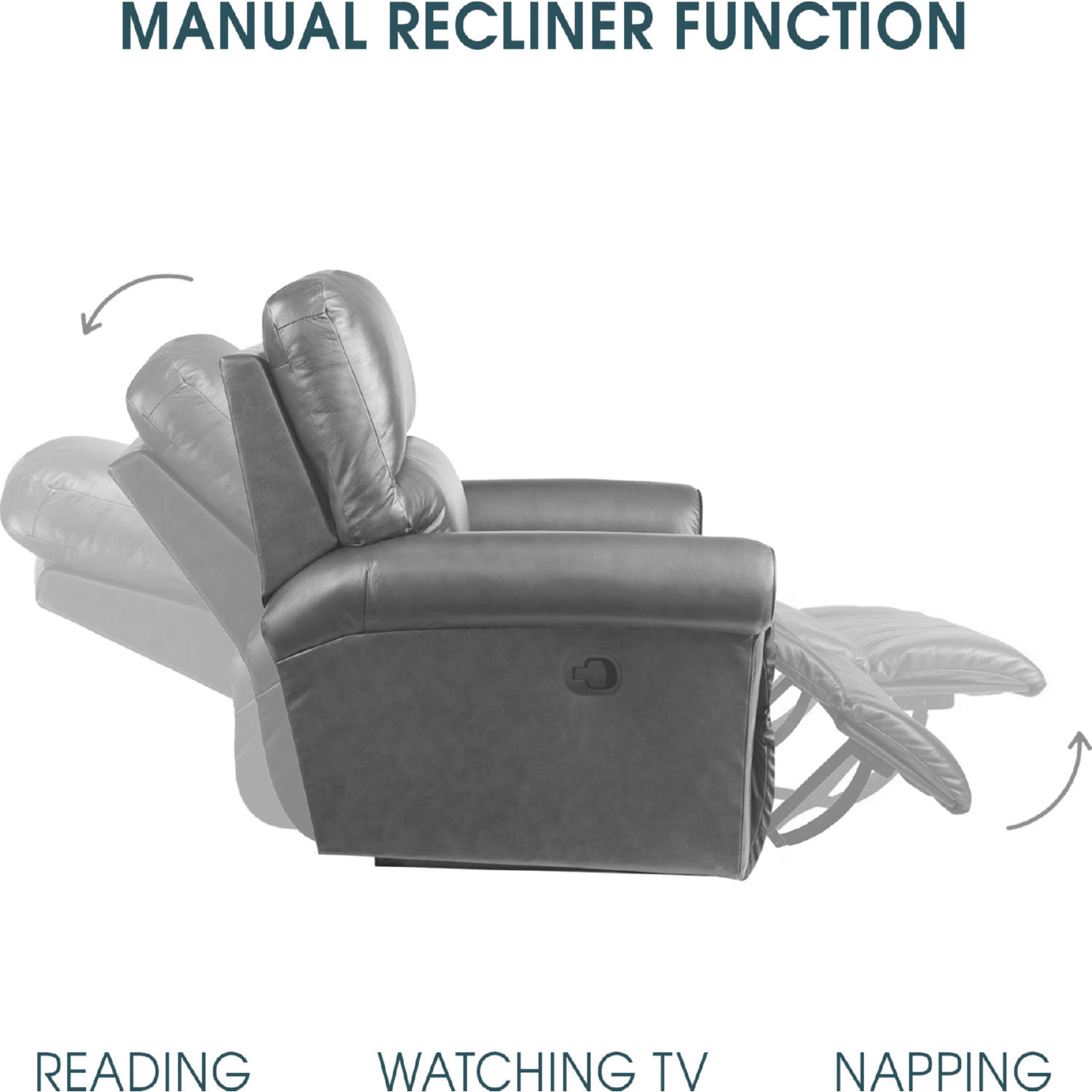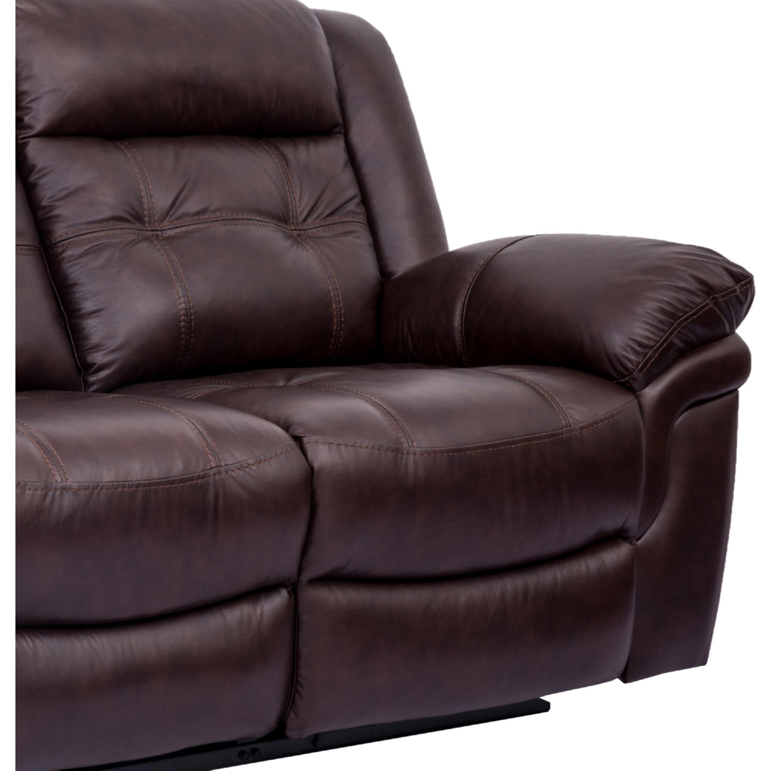 Movie nights will forever be changed with the Marcel Leather couch from Armen Living. This reclining sofa will bring the best of comfort, design, and convenience to your home. The Marcel couch is upholstered in genuine leather that exudes a butter soft texture and can easily be cleaned. Genuine leather outlasts other upholstery furniture as it's a flexible and strong material, making it resistant to tears and punctures. This leather sofa can last for decades if cared for properly and allows you to create a hypoallergenic environment. One of the benefits of a manual recliner sofa is the speed at which you can sit up or recline. A manual couch will allow you to recline quickly, whereas a power recliner chair reclines at a slower pace. This can prove to be a nuisance if you need to get up quickly. A manual functionality makes the Marcel is a bit more carefree than a power recliner sofa. They have the flexibility to go anywhere in your house as they do not require access to a power outlet. The Marcel collection features a recliner chair, and a reclining sofa available together as a sofa set or individually. The Marcel Reclining Sofa from Armen Living is available in beautiful dark brown genuine leather upholstery and is a perfect addition to your living room, mancave, den, or home theater! Armen Living stands behind all products sold and gladly offer our customers a 1 year limited manufacturer warranty on all items. Our products are made from high quality materials that will last for many years to come. The journey towards sustainability starts with products that can be repaired for longevity of use. Leather needs very little in the way of life-time maintenance and it easy to do at home, it does not draw heavily on resources for laundering and drying.